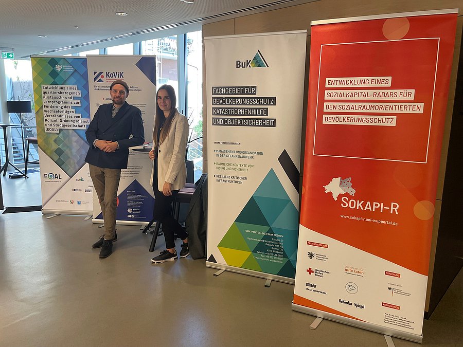 Daher fand sich dort auch das Projekt KoViK wieder, was sich am Messestand mit verschiedenen Informationsmaterialien präsentierte um die Gelegenheit zu nutzen, mit Vertreter:innen kommunaler Behörden zum Thema Krisenvorsorge auf lokaler Ebene ins Gespräch kommen zu können.