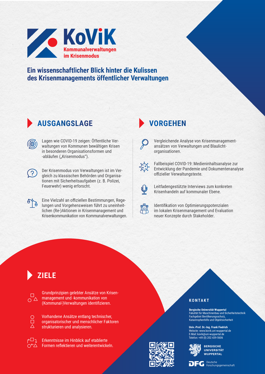 Schulte, Y., Schütte, P. M. & Schönefeld, M. (2024). KoViK – kommunales Krisenmanagement in der Doppelrolle. In Bundesamt für Bevölkerungsschutz und Katastrophenhilfe, Forschung für den Bevölkerungsschutz: Fachkongress vom 12.-14. Januar 2023. https://www.bbk.bund.de/SharedDocs/Downloads/DE/Mediathek/Publikationen/FiB/kongressband-I.pdf?__blob=publicationFile&v=5